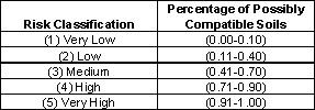- If geological conditions were found to be a combination of compatible (Y) and possibly compatible (P) with the construction method in question, then the method is considered to be permissible and the associated level of risk will ranged from very low to very high depending on the percentage of length of the alignment of the possibly-compatible soils which is shown in Table 4.