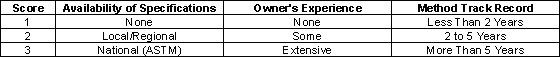 After the technical evaluation stage, the methods that were deemed technically suitable for the project are then reevaluated for the relative level of risk associated with four different categories of risk. The first category is the installation parameters: drive length, pipe diameter, and depth of cover. In this category the project specific values are compared to the limits of each of the remaining construction methods. This comparison results in a percentage which is then assigned a risk level based on the percentage ranges shown in Table 2.