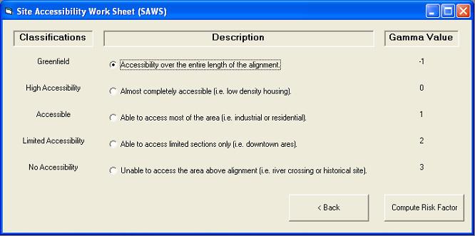 After computing the IRAIN a site accessibility adjustment is made, via the selection of the appropriate gamma value based on the description shown in Figure 9.
