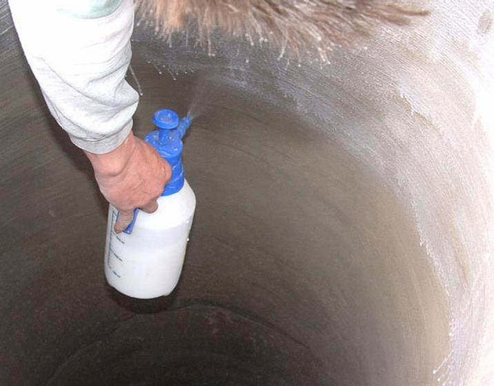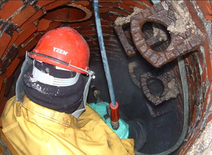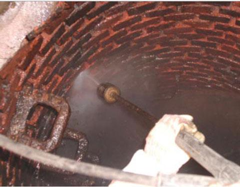 To keep a sustainable subsurface and the pre-conditions for a good bond of the coating, first of all dirt, coverings and glaze as well as damaged material have to be removed from the manhole wall. For this purpose, usually high-pressure water cleaning is used.