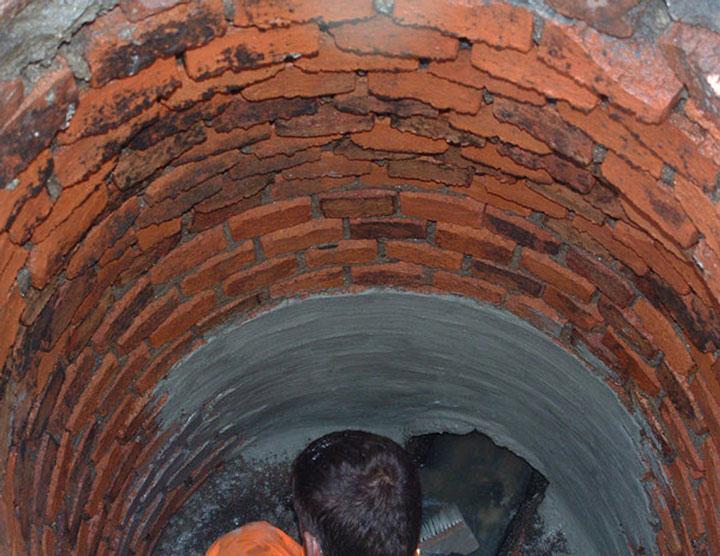 Brick-built manholes with strong joint corrosion and concrete manholes with advanced concrete corrosion have a very uneven wall surface. Before these manholes can be coated by spray lining, the surface needs to be flattened manually with a pre-coating of mineral mortar first.