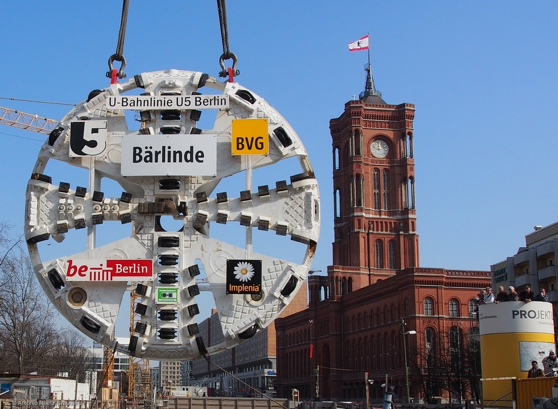 With the closing of the gap by the Berlin metro line U5, 25 years after reunification the Berlin subway network is also growing together. After completion, 22 kilometers of subway lines will run uninterrupted into the center of the capital. The 2.2 kilometer long extension of the subway line U5 from Alexanderplatz to the Brandenburg Gate is being carried out by the municipal transport company Berliner Verkehrsbetriebe (BVG) and its subsidiary Projektrealisierungs GmbH U5 on behalf of the German Federal Government and the State of Berlin. The Swiss construction company Implenia Construction GmbH is handling the construction work. 1.6 kilometers of the 2.2 kilometer long new line were built by mechanized tunnelling using the Herrenknecht Mixshield S-788, christened "Bärlinde".