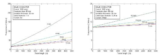 Four drive lengths (2km, 5km, 7km, 10km) were investigated using four pipe diameters (600mm, 1000mm, 1400mm and 1800mm), which were selected in light of the outcome of the heat dissipation modelling for given power ratings, pipe lengths and cooling methods (not described herein), see Figure 7. It would appear theoretically possible to install a 600mm diameter pipe over the 10km drive when considering the maximum pull-in capacity of current technology (approximately 6000kN). However, this would see the drilling rigs operating at its limit and as the borepath modelled within Figure 7 is idealised, with no deviations or collapsed sections, any changes resulting in an increase in pull-in forces would make it impossible to install the pipe over 10km using conventional drilling practices. Thus accurate control of the cutting head and maintaining the stability of the bore become paramount if such an undertaking is to be achieved. Increasing the pipe diameter to 1000mm results in a reduction in maximum drive length to less than 5km and a 1400mm diameter pipe would be limited to approximately 2km drives.