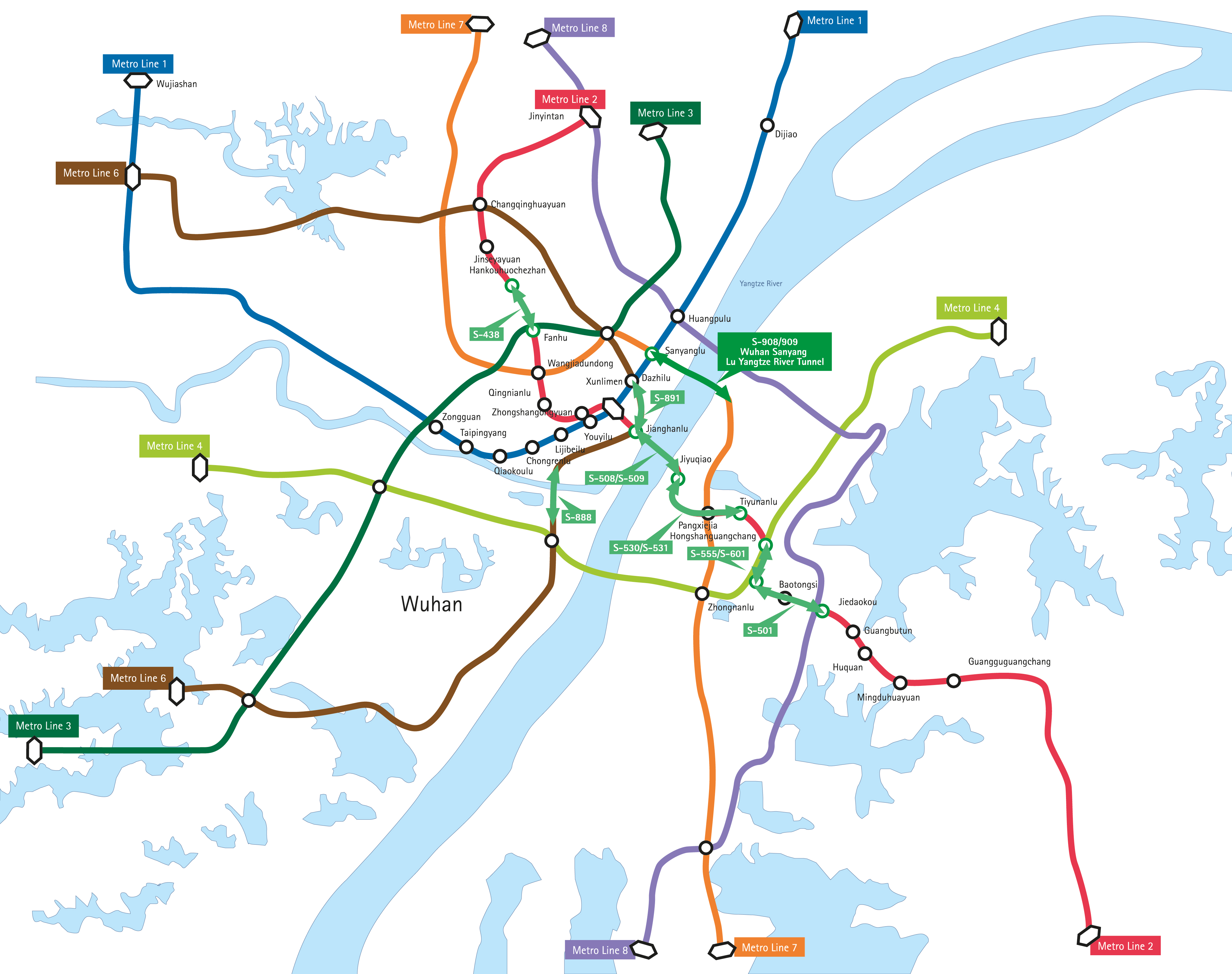 The 10 million metropolis of Wuhan is the most important transport hub in central China. By 2017 the metro network of 3 lines will be extended to 7, from the current 73 km to 215 km in length. The two Mixshields with an excavation diameter of 15.76 m to be supplied by Herrenknecht will cross under the Yangtze River in Wuhan and create a twin-bore double-decker tunnel.