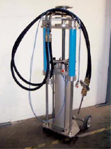 For this purpose and in addition to the standard size cartridges, a newly developed, pneumatically driven discharging machine (patent pending) with a working volume of approx. 6 l is available (Figure 5).
