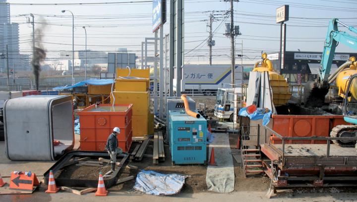 The stabilisation method adopted at the site was the CCP-L method, involving horizontal high pressure jet grouting. This method has three primary advantages; narrow onsite mobility, working space security, and good stabilisation of the soil body.
