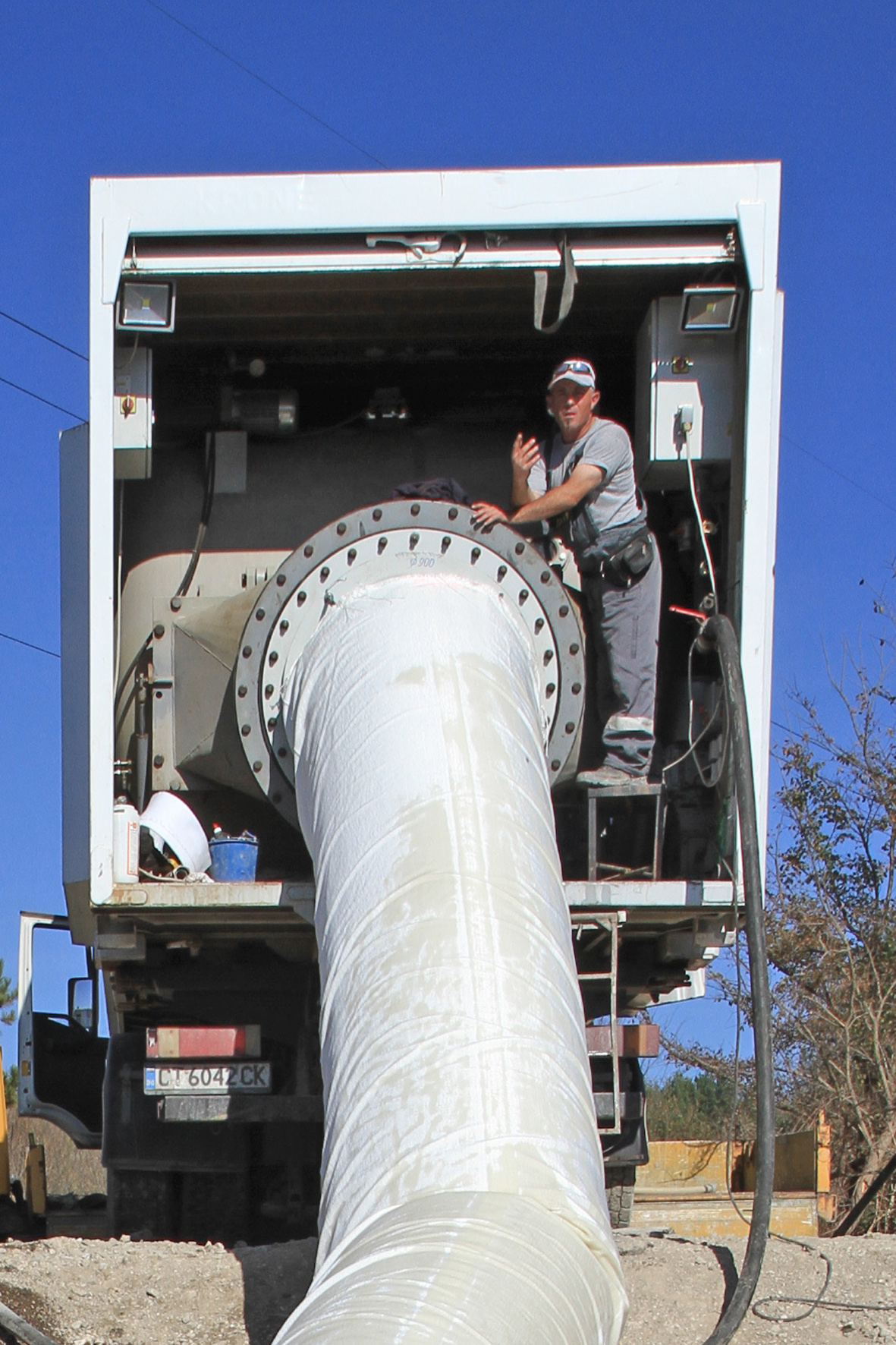 After pipe cleaning, the main hose was gradually drawn into one of the two 164 m long pipe sections by means of a 20 tonne capacity winch. Afterwards, the calibration hose was inverted with low pressure and a speed of 3–5 m/min by means of a pressure drum to position the main hose in the old pipe. The hoses were steam cured at a laminate temperature of 70°C and a new stand-alone pipe was created within a period of two hours. The insulating PE outer coating of the main hose allowed a reduced curing time despite the challenging construction site conditions and the high water level.