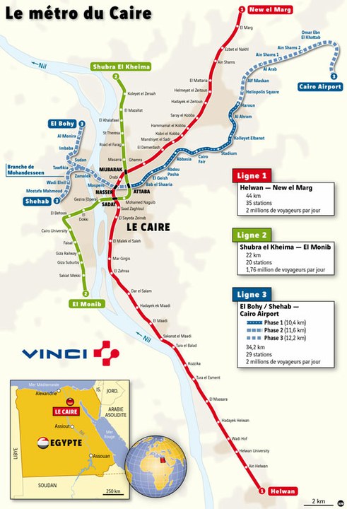 Line 3 of the Cairo metro was opened in February 2012. This first phase includes five underground stations (Attaba, Bab el Shaaria, El Geish, Abdou Pasha and Abbasia) and serves the eastern part of Cairo from the city centre. Once completed, Line 3 will cross the Egyptian capital from east to west, from the airport to the districts west of the Nile. The development of the Cairo metro system is part of a large-scale plan aimed at serving the transport needs of the Greater Cairo area up to 2022. It will help to reduce pollution in Africa's largest metropolitan area.