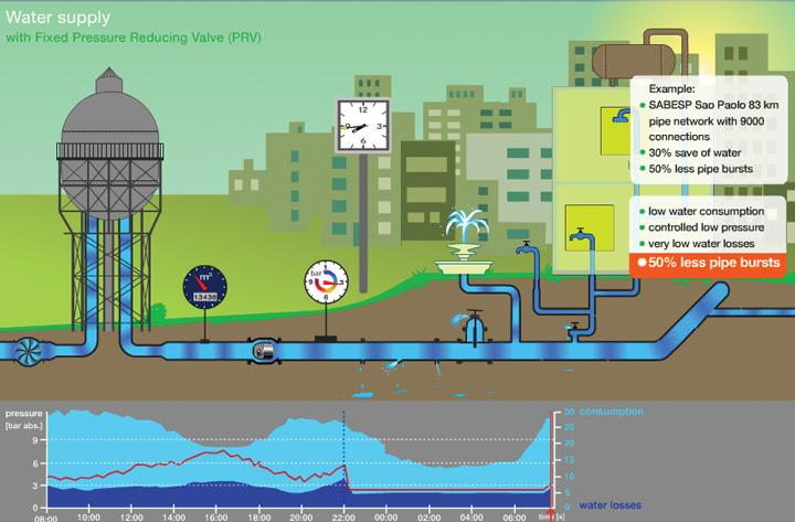 The project Santo Amaro in the Metropolitan area of São Paulo, Brasilia The water consumption in the Metropolitan area of Sao Paulo is continuously increasing. Today, for the local water suppliers -namely the state owned company SABESP - Companhia de Saneamento Básico do Estado de São Paulo - it is a challenge to meet the demand of the 17 Million people of Sao Paulo and ensure a constant supply of potable water in sufficient quantities. Despite the quality service provided by SABESP it is possible to experience periods of rotational supply caused by lack of resource during a dry period. One reason for lack of water supply is the high volume of - physical- water losses which occur during operation by leakage at critical points like mains and fittings, if the pressure can be managed effectively, then water loss will be reduced.