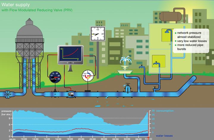 2. Flow or Demand Based Modulation (picture 3) More water can be saved and more pipe bursts can be avoided when the pressure is following the demand cycle during the whole day, week, month and year.