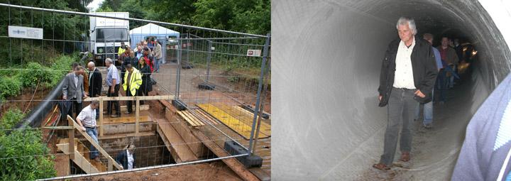 The second job-site demonstration on 12th June 2008 was mainly used to show the finished product. Wooden stairs, especially constructed for this purpose, allowed the visitors entrance from the up-stream end. By walking through the relined retention pipe over its whole length of approx. 85m, participants had the opportunity to convince themselves of the achieved quality (Figures 6 and 7).