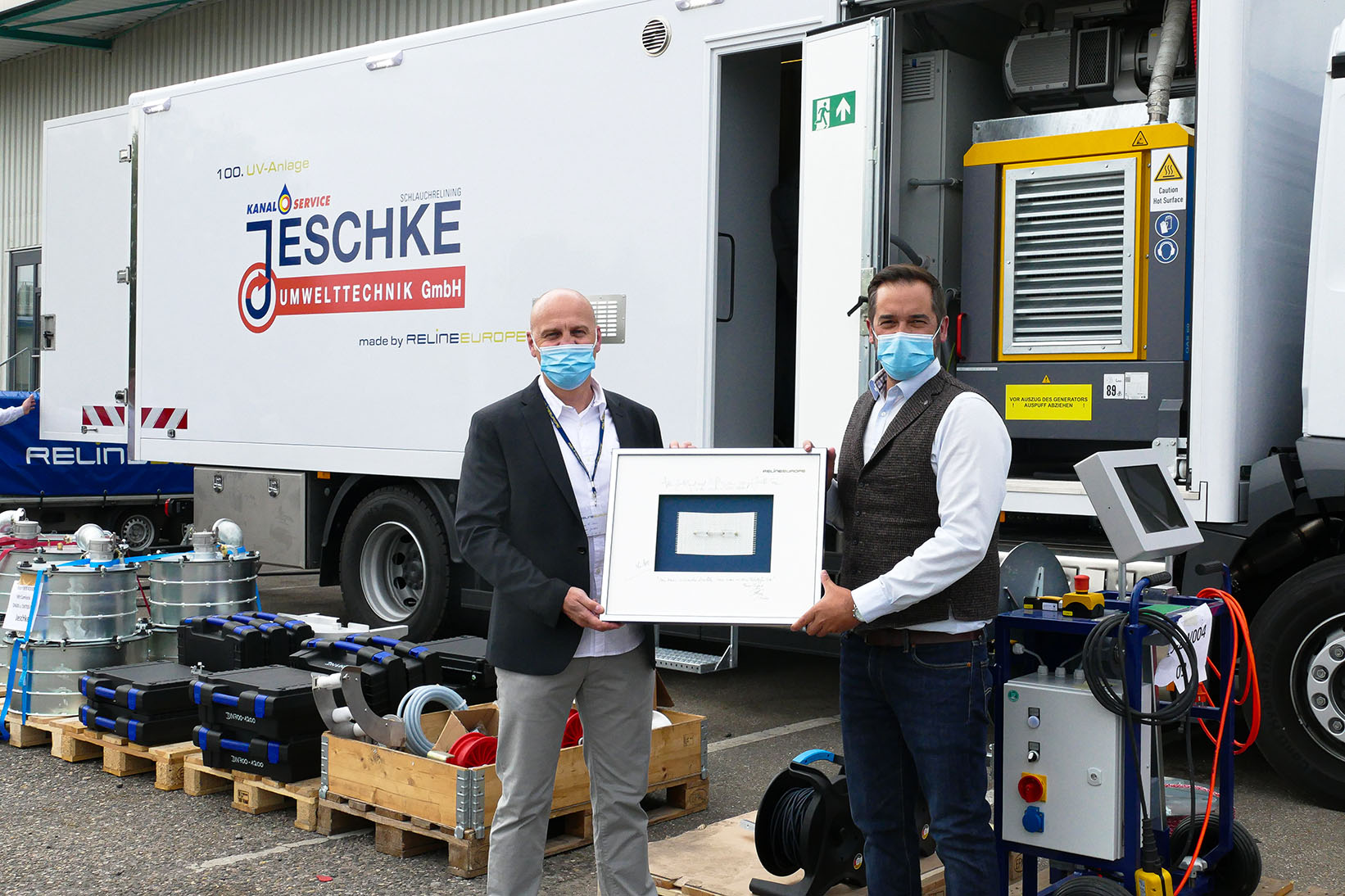 RELINEEUROPE AG, the system provider for trenchless pipe rehabilitation based in Rohrbach, recently celebrated a special occasion in this specific field of business: In May, the 100th UV curing system was handed over to Jeschke Umwelttechnik.