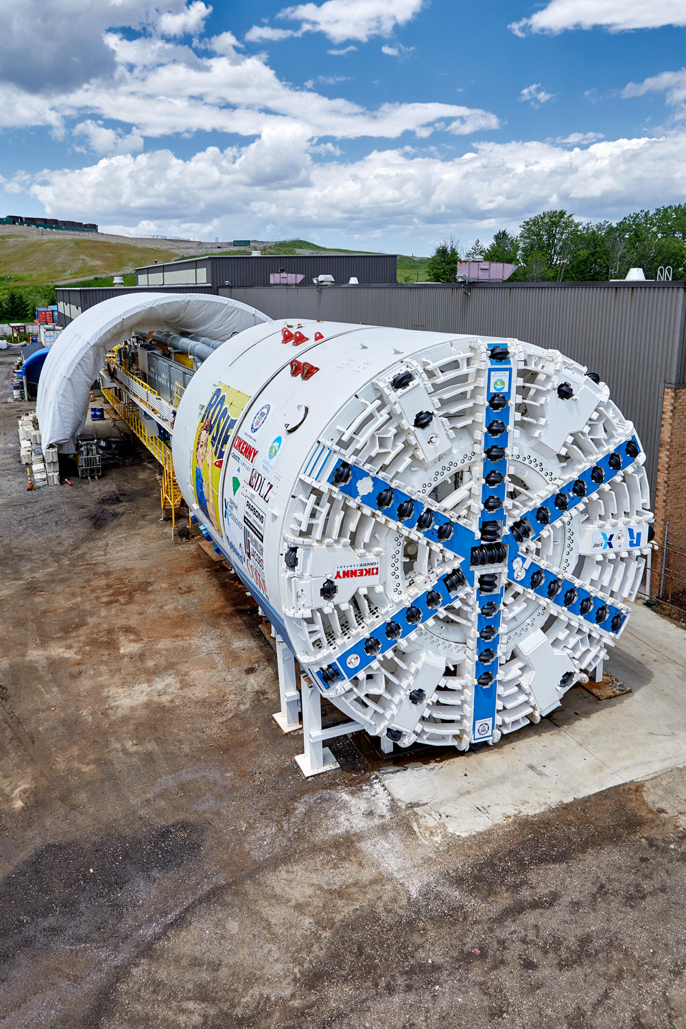 A Robbins Crossover (XRE) TBM measuring 9.26 m (30.4 ft) in diameter underwent factory acceptance on May 30, 2016. The gargantuan machine was initially unveiled at Robbins’ Solon, Ohio headquarters during a press day on May 25 before being shipped 40 km (25 mi) south for construction of the Ohio Canal Interceptor Tunnel (OCIT) in Akron.