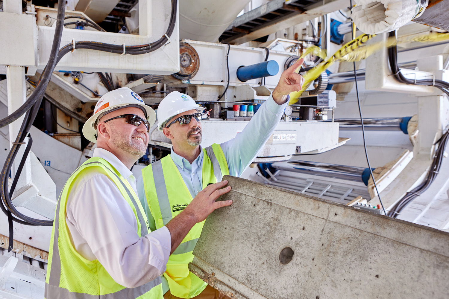 Those present included Akron Mayor Daniel Horrigan, Robbins chief engineer Dennis Ofiara, and David Chastka, project engineer for contractor Kenny-Obayashi JV.
