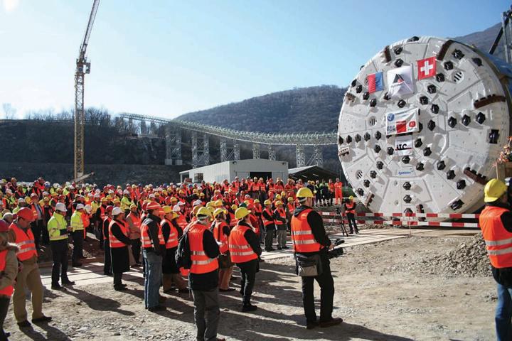 On February 15 a cutterhead turning ceremony marked the official startup of adit tunneling on the Ceneri Base Tunnel. The 9.7 m (31.8 ft) Robbins machine will excavate a 2.4 km (1.5 mi) long access tunnel in Sigirino, Switzerland for the Consorzio Monte Ceneri (CMC) JV-a consortium of CSC, Lugano, Frutiger SA, Thun, Rothpletz, Lienhard + Cie, and Aarau.