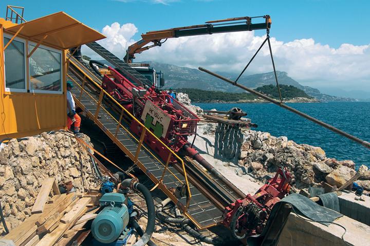 The modernization of the sewage system of Saint-Jean-Cap-Ferrat (Côte d’Azur) in France included the installation of a 110m long Sea Outfall pipeline. The construction company RPS mastered the narrow access routes, limited space conditions and unstable geology using a mobile Herrenknecht Crawler Rig HK150C.
