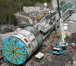 A continuous lining of 500 mm (19.7 in) thick pre-cast concrete segments is being erected to line the tunnel as the TBM bores. Muck is being transported from the jobsite by a network of conveyors. A unique conveyor system, provided by Robbins, is integrated directly to the back-up system and reduces the number of transfer points between conveyors.