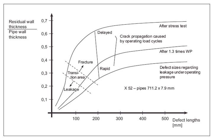 One of the prerequisites of stress test effectiveness is that test stresses act in the same direction as the stresses occurring during pipeline operation and that stress levels differ sufficiently. In pipelines with pitting corrosion, however, stress tests are not sufficient as the sole rehabilitation procedure. In this case, defects caused by corrosion must be tracked down with the help of other suitable test instruments such as "intelligent pigging systems" and removed if they overstep a critical size.