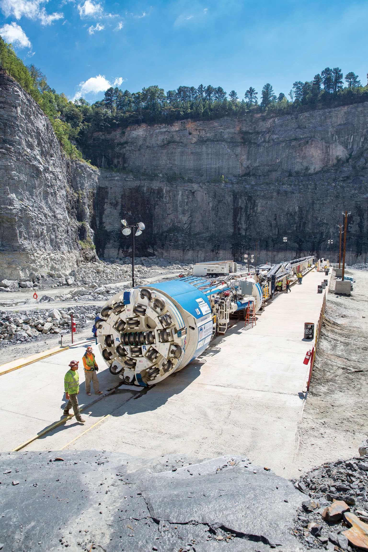 The designer for the construction works including tunnel and shafts, JP2—consisting of Stantec, PRAD Group, Inc., and River 2 Tap—specified the hard rock TBM. Operation and assembly of the TBM was then sub-contracted to the Atkinson/Technique JV. The robust TBM was assembled using Onsite First Time Assembly (OFTA) at the massive Bellwood Quarry site with help from Robbins personnel.
