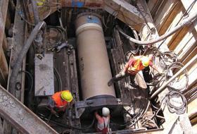The pipes used for the project are HOBAS CC-GRP Jacking Pipes with outer diameters of 1,099 and 1,229 mm. Two independent microtunneling machines were utilized and the right amount of lubricant was applied to maximize the progress. The smooth and non-absorbent surface of the pipes doubled the effect of bentonite lubricant so that the installation ran smoothly over the 200 m long drives and without the help of intermediate stations. The latter would only have been activated if allowed jacking forces had been exceeded. Since their help was not needed, the installation speed was doubled.