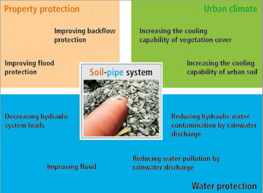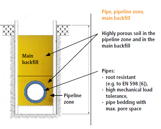 storage volume, the soil in the pipe trench becomes a storage space for rainwater and extra