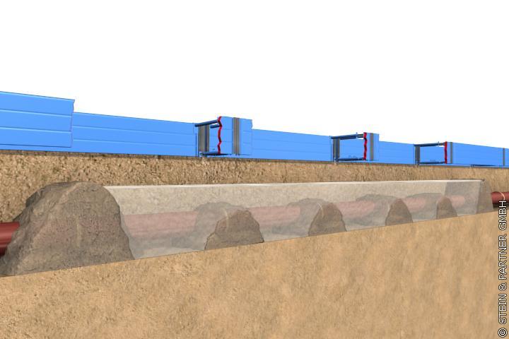 - Prevention of typical installation failures / damage causes which may occur during the conventional installation (e.g. insufficient filling and sealing of the spaces at both sides of the bottom half of the pipe, point bedding of the pipeline, sealing loads that are too high, application of inappropriate materials etc.)