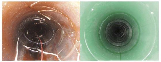 - Re-shaping of a circular profile: slight to medium deformations and misalignments are compensated for by the guide head, thus re-shaping the circular form of the pipe. This improves the hydraulic properties compared to the defect host pipe.