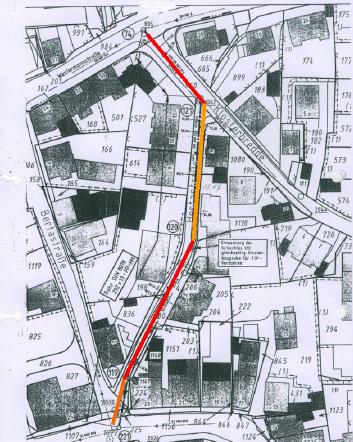 The sections (Fig. 16) 74 / 121, 121 / 120, 120 / 119, 119 / 221 to be renovated using the trenchless Tight-In-Pipe method. The complete length was 186 m (610 ft). According to Dr. Christan Falk, head of the sewer department of the municipality of Dortmund and GSTT Board member, installation with open trenches was impossible because of narrow site conditions and the risk for a 2 m high house wall, which was in danger of collapsing. Also, the project would have taken much longer.