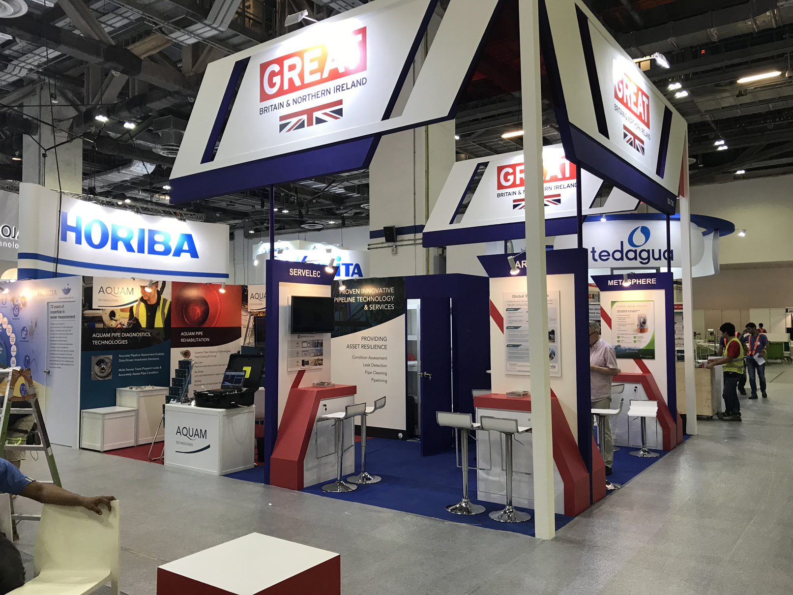 The companies taking part in the UK Pavilion were Aquam, Arvia, atg UV, Servelec, Metasphere, Riventa and Solar Water. Other UK companies supported by DIT were Ant Access and Duvalco; some companies featured in a separate Scottish Pavilion.