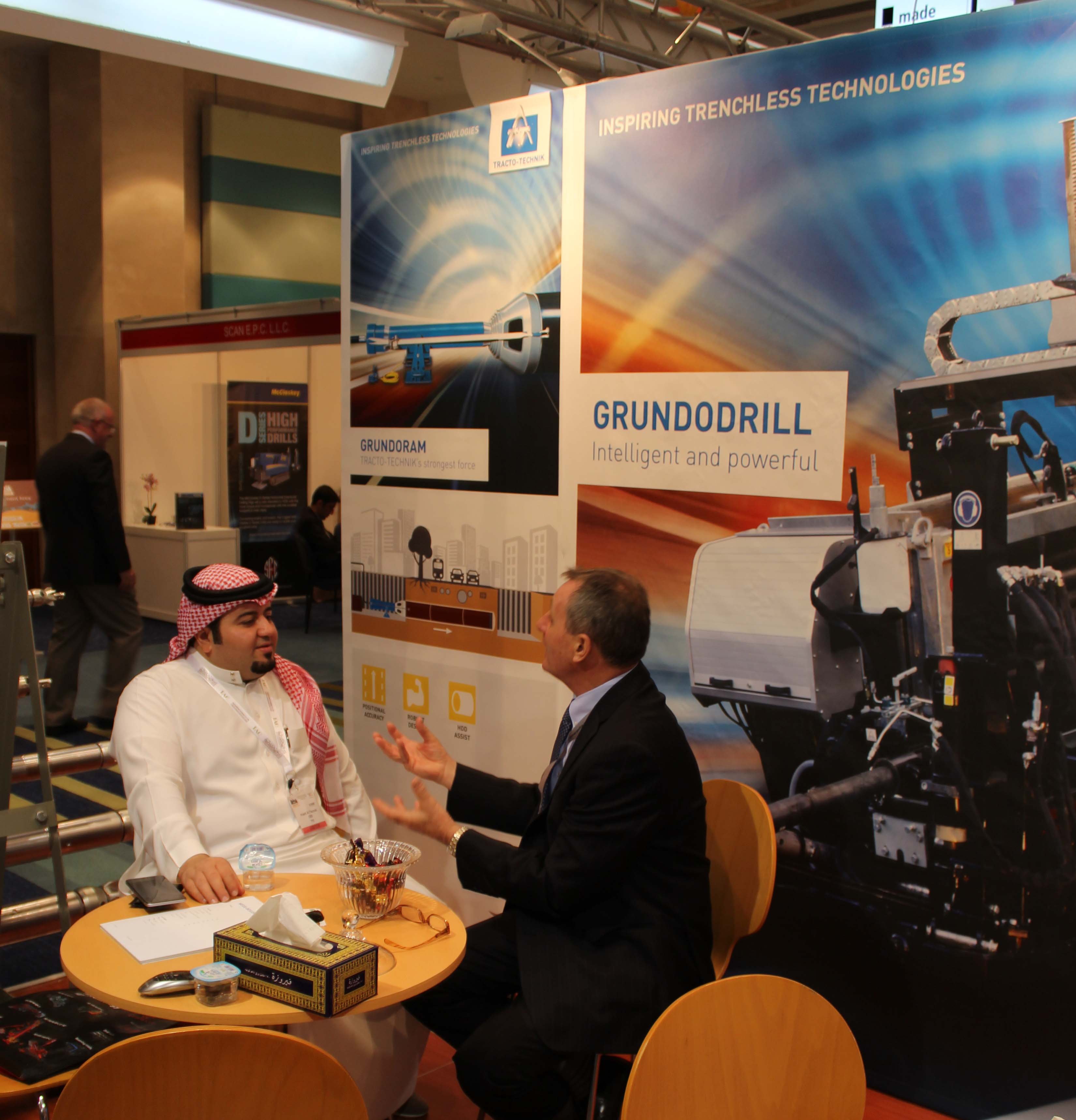 With many prestigious utility, construction and contracting companies visiting the stand there was great interest across the entire TT range. The Grundomat, Grundoram and Grundoburst products were of particular interest with orders for TT equipment being agreed during the Exhibition. There was also an order confirmed from neighbouring Saudi Arabia, for the HDD Grundodrill 18ACS ‘The King of Rock’.