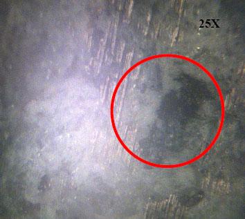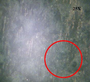 Unaltered Specimen (control; fresh concrete pipe): Following the electrokinetics coating process, the solution remaining in each of the specimen was removed and the inner wall of the “pipe” exposed by cutting ‘slices’ using a masonry diamond saw. The slices were inspected using a powerful optical microscope for evidence of copper particles deposited in the concrete matrix. The images from the optical microscopy examination revealed what appeared to be copper oxide particles deposition inside the concrete matrix. Figure 4 presents selected snap shots from the microscopy examination. Copper depositions can be identified as green color areas on the gray-white background of the hardened cement matrix. Images 4a and 4b display distinct green areas within the gray-white background typical for hardened Portland cement paste. These areas are suspected to be traces of copper oxide driven into the concrete matrix via the electrokinetics process. Images 4a and 4b were taken from the non-corroded and partially corroded specimens, respectively. In contrast, image 4c displays a uniform gray color, with no traces of green areas. This suggests that the copper-oxide did not penetrate into this specimen during the electrokinetics process. A possible explanation is that the weak electrical field is present between the anode and cathode only. Exposing the reinforcement resulted in a “shortcircuit” with the electrical current gradient flowing primarily to the partially exposed reinforcement rather than moving through the less conductive concrete material.