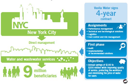 « It's a model in which the role of the private company is broadened to assessing performance and then assisting the public operator to implement the recommendations made. Under the terms and conditions of this contract, Veolia Water shares with New York City the benefits and the risks alike. »