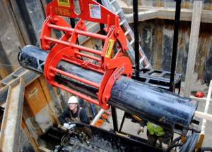 Three start pits were required for the installation work, which comprised some nine (9) individual bores which totalled some 225 m (738 ft) in length. Each individual bore varied in length from 15 to 35 m (49.2 to 114.8 ft) and utilised a pilot cutting head on the AXIS system of 344 mm (13.1 in) diameter. This allowed the 250 mm (9.8 in) diameter PP (polypropylene) perforated pipes to be installed in a single direct pullback operation, eliminating the need for a reaming stage. The pipe used for the new installations was Egeplast SL PP-B modules (Multirastermodule) in 1.95 m (6.3 ft) long sections with drainage slots.