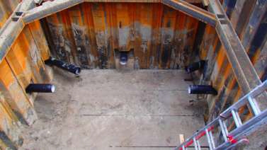 Given the soil conditions and high water table, preparations for the boring work included the installation of a well-point dewatering system to lower the inherent water levels to the point where start shafts and reception pits could be installed effectively and kept open for the duration of the boring work without being flooded.