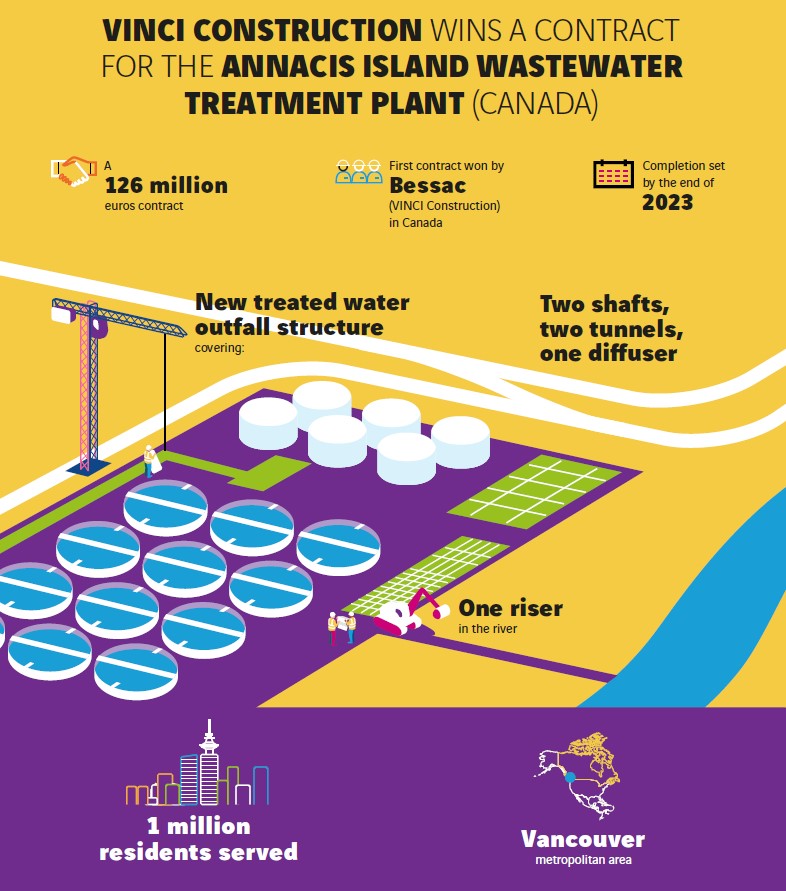 VINCI Construction, via its subsidiary Bessac and in a general partnership with the Canadian Pomerleau company, has won a contract to build new pipelines for the Annacis Island wastewater treatment plant near Vancouver.