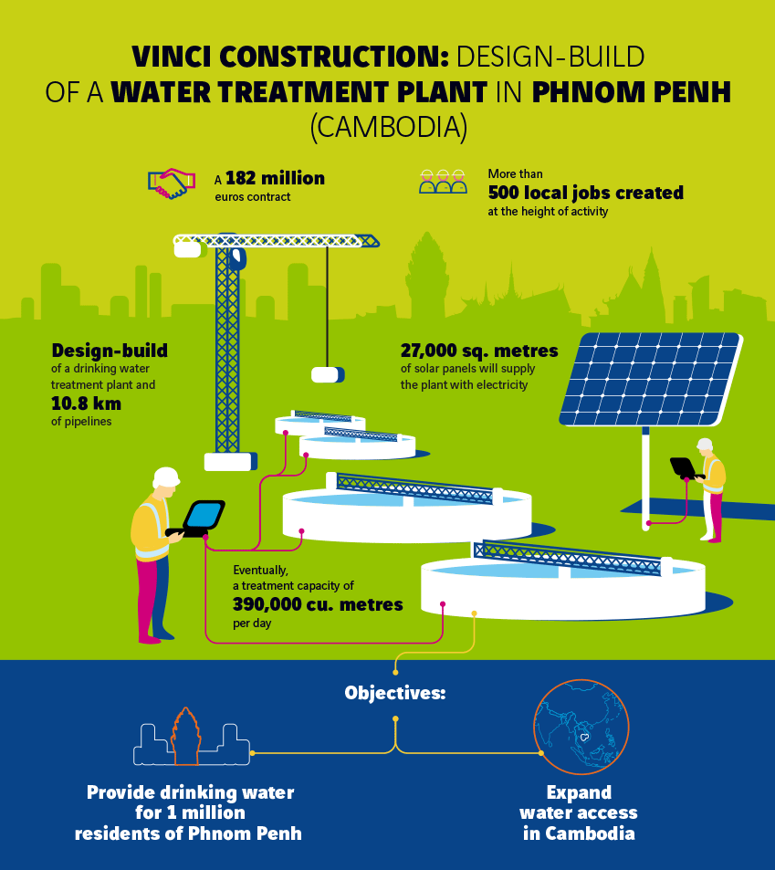 On 14 November 2019, VINCI Construction Grands Projets signed a contract with the Phnom Penh Water Supply Authority to design and build the Bakheng water treatment plant in the northern outskirts of the Cambodian capital.