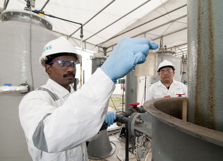 A new biological water purification facility developed by Siemens generates enough methane gas to power its own operations. It also produces much less sludge than conventional systems. The pilot facility for this process, which is located at a site run by Singapore’s Public Utilities Board, has been operating in an energy- neutral manner since June 2010. Now, the city state is building a much larger pilot facility – one that will process 300 times more effluent than its predecessor, or about as much sewage water as is produced by around 1,000 people.