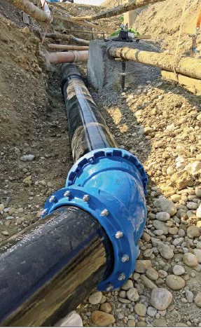 All vonRoll socket system products – ductile cast iron pipes, fittings and shut-off valves – were secured with its own flexible vonRoll HYDROTIGHT restrained joint system.