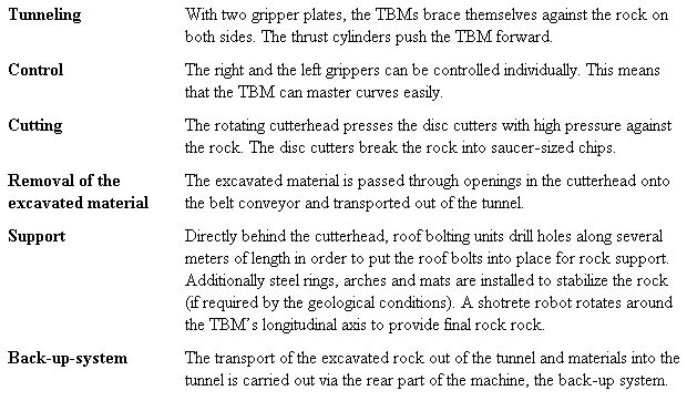 Four Herrenknecht Gripper Tunnel Boring Machines (TBM) bore and secure more than 85 kilometers of the two 57-km long main tubes of the Gotthard Base Tunnel. Gripper TBMs are specialists for hard rock.