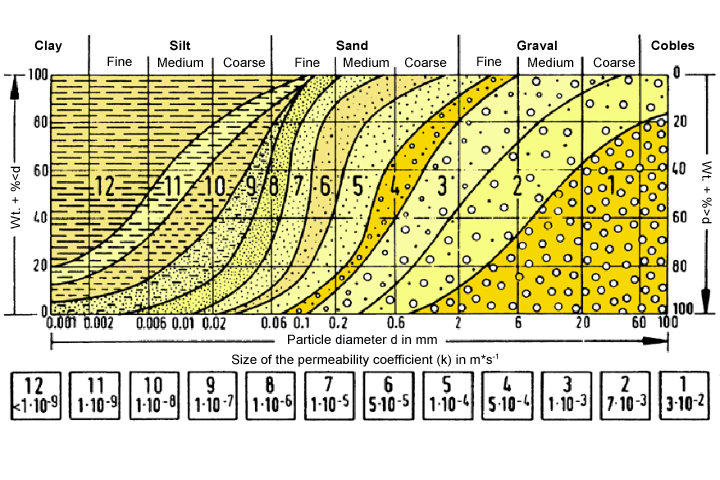 | silt | 10-9 to 10-5 | 10-9 to 10-7 |
