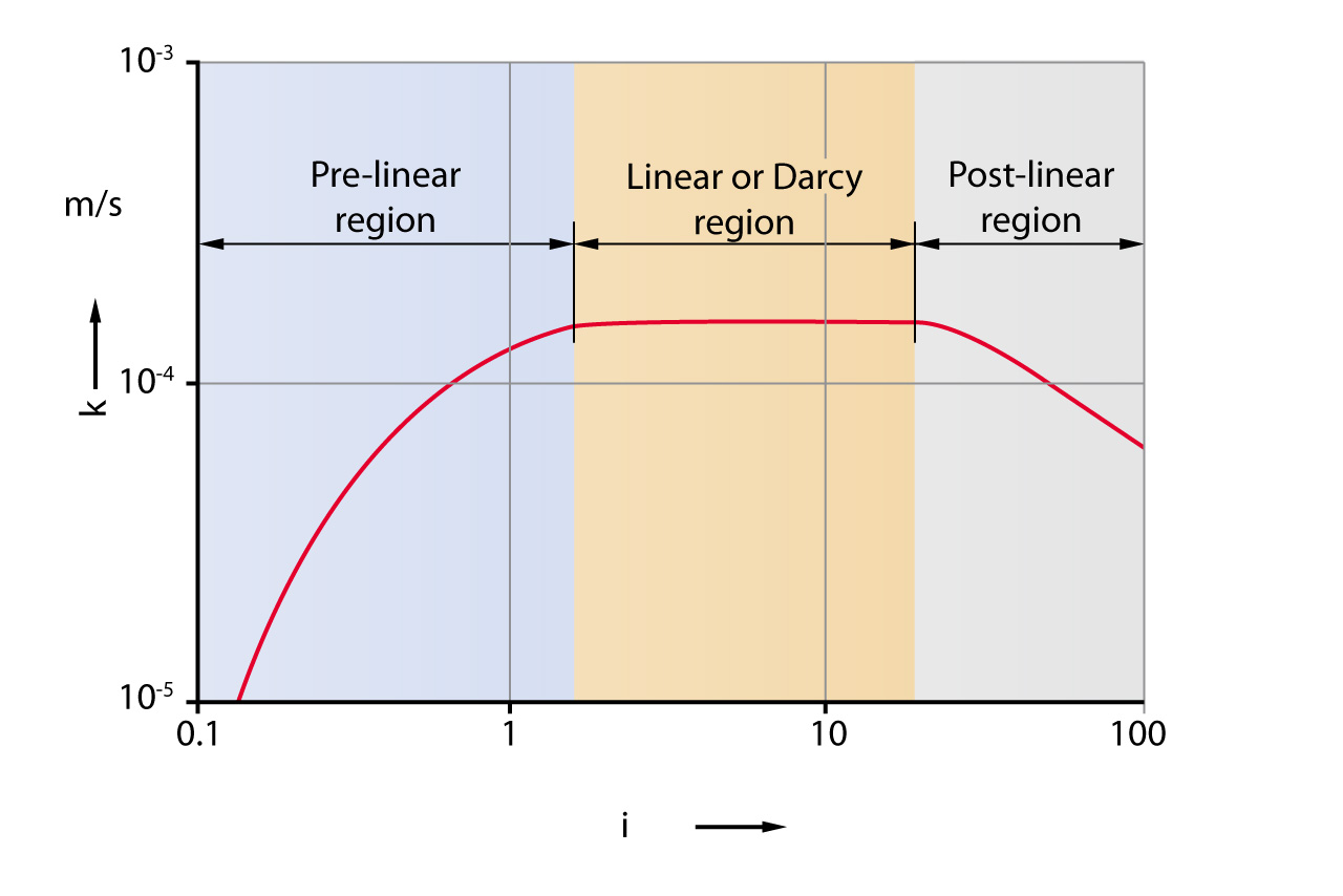 Darcy‘s law does not apply to coarse granular materials (turbulent flow).