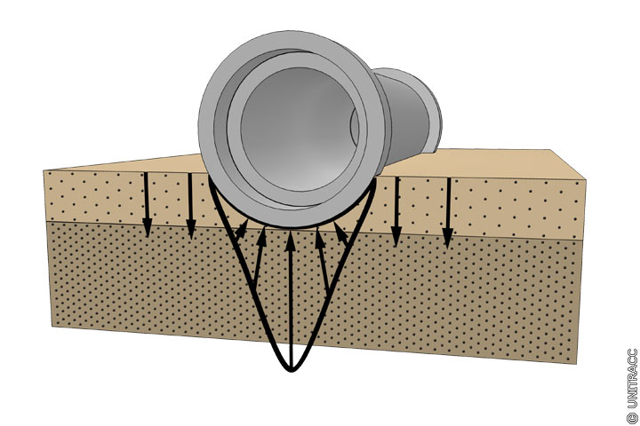 Gute Lastverteilung durch günstiges Steifigkeitsverhältnis zwischen Grabensohle und Bettungsschicht [Quelle: visaplan GmbH]