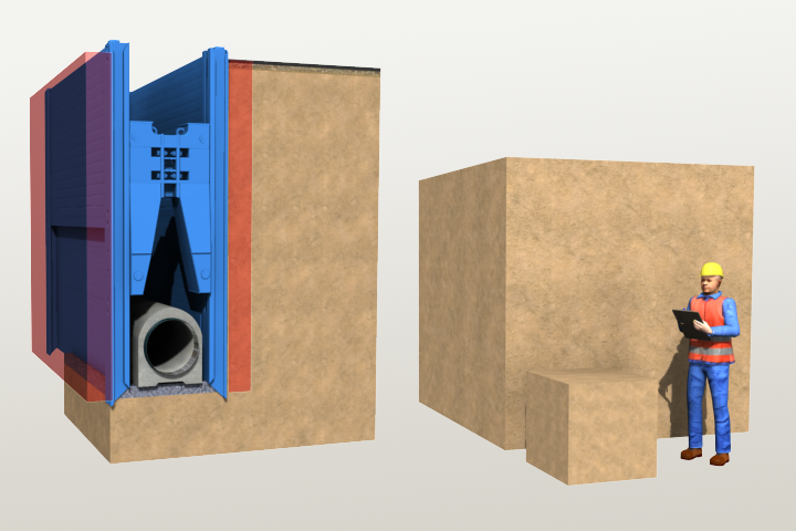 Da der Arbeitsraum nicht mehr benötigt wird, kann die Grabenbreite deutlich reduziert werden.