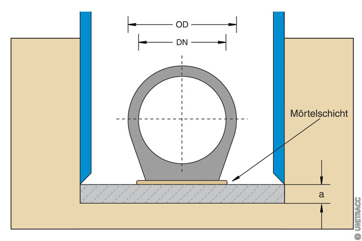Bei der Auflagerung auf Beton ist es erforderlich, die Rohre auf eine dünne Zwischenschicht aus frischem Mörtel zu legen, um Punktlagerungen zu vermeiden.