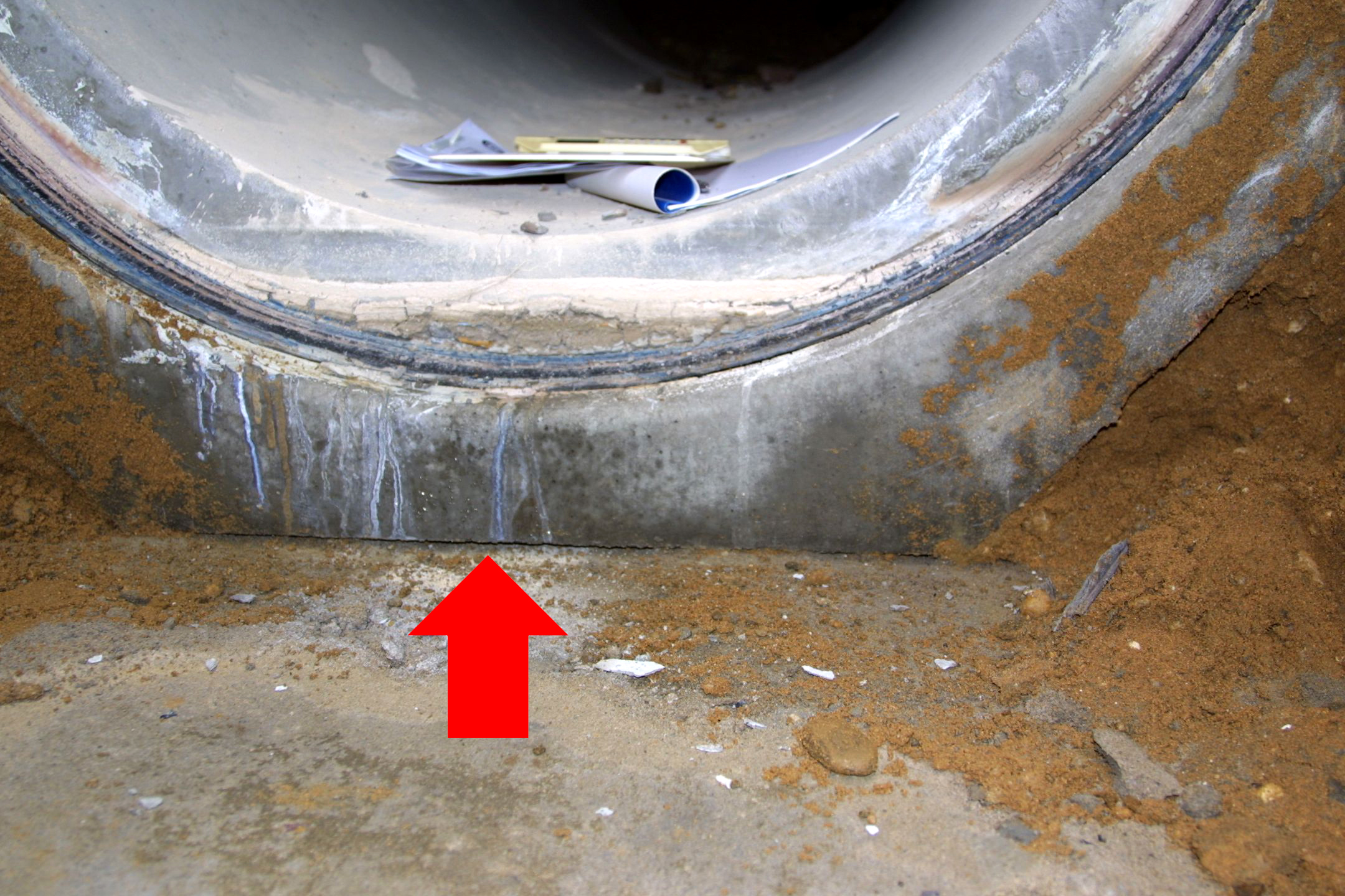 Beispiele für fehlerhafe Betonbettung für Betonrohre mit Fuß