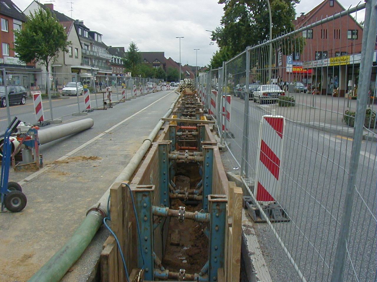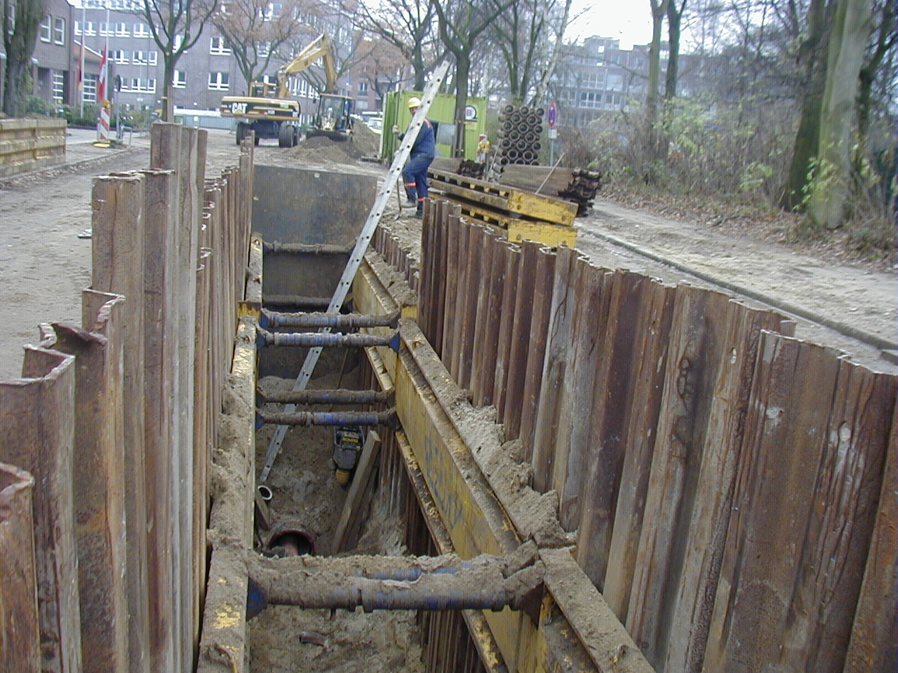 Beispiel für die Bettungsbedingung B2 – Verbau mit Kanaldielen [Bild: Güteschutz Kanalbau e.V.]