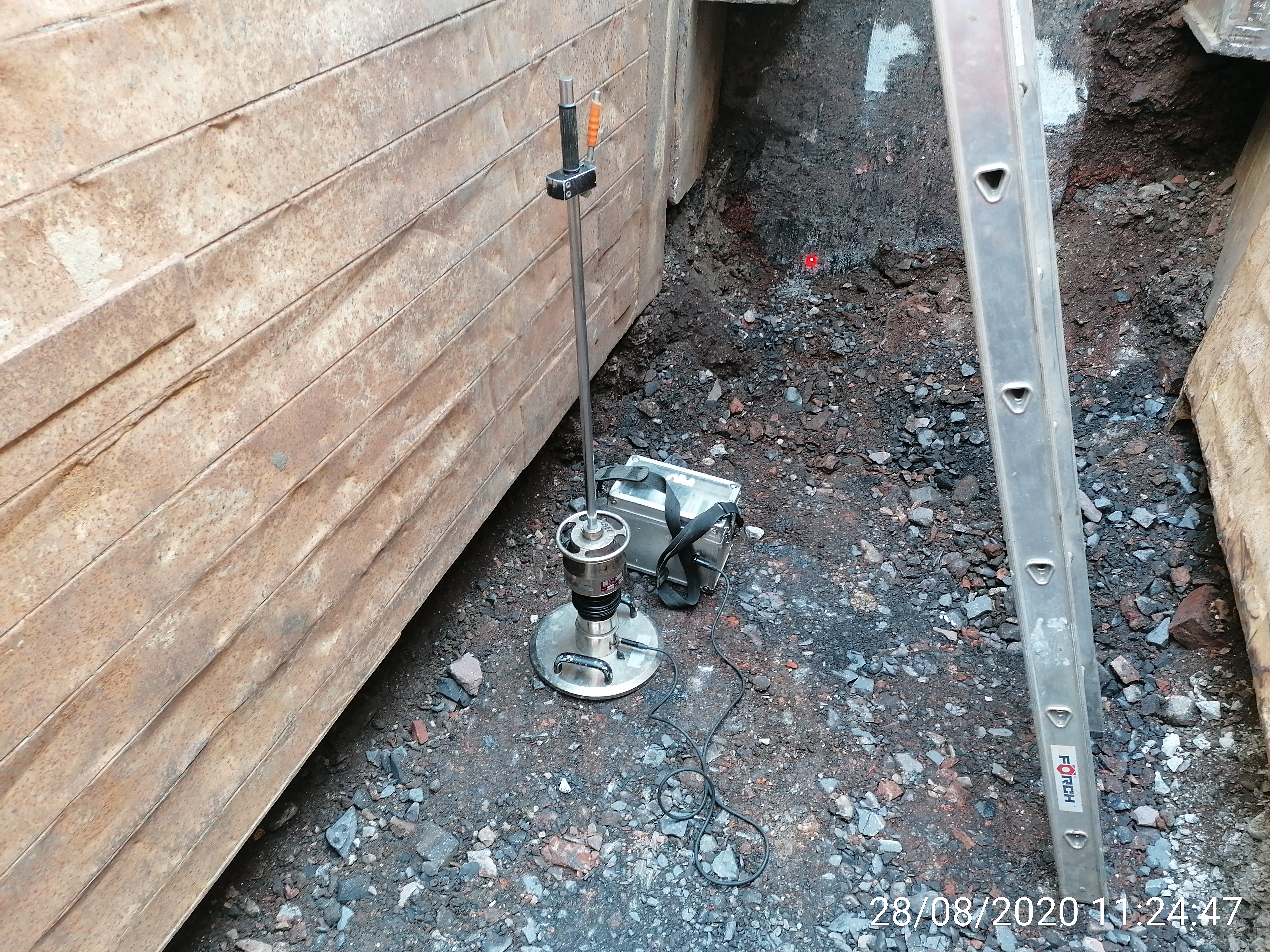 In diesen Fällen ist vorab eine Schicht aus einem feinem Sand herzustellen, auf der dann der Plattendruckversuch stattfindet. Die nachfolgenden Bilder zeigen eine Grabensohle, die eine Ausgleichsschicht aus feinem Sand erfordert.