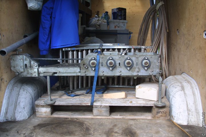 Die in diesem Fall zum Einsatz kommende hydraulisch betriebene Wickelmaschine ist zur Auskleidung von Rohrleitungen mit Durchmessern von DN 600 bis DN 1200 geeignet. In Abhängigkeit des zu wickelnden Durchmessers werden lediglich unterschiedliche Wickelkörbe verwendet.