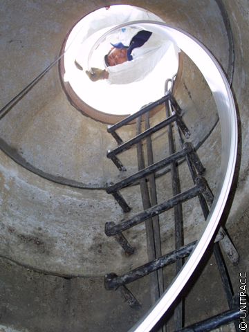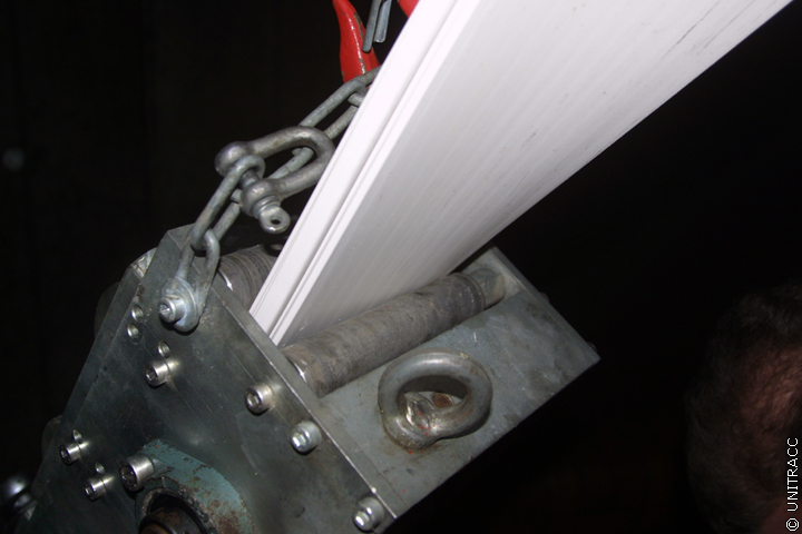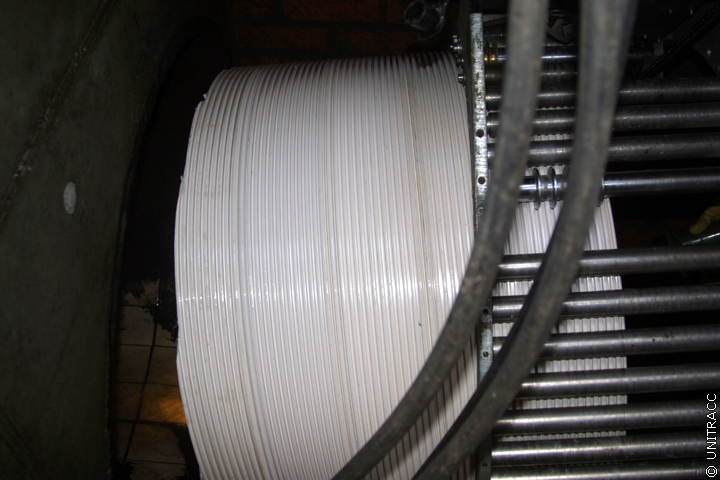 Anhand der Angabe des lfd. Meters auf der Rückseite des T-Stegprofils kann nachvollzogen werden, welche Länge Wickelrohr bereits hergestellt worden ist. Nach dem 21 m (Länge der zu sanierenden Haltung) gewickelt worden sind, wird überprüft, ob die noch fehlende Länge Rohr bis zum Erreichen des Zielschachts mit der bereits gewickelten, noch im Startschacht befindlichen Länge übereinstimmt.