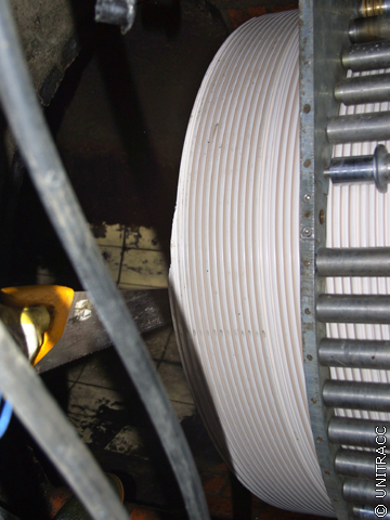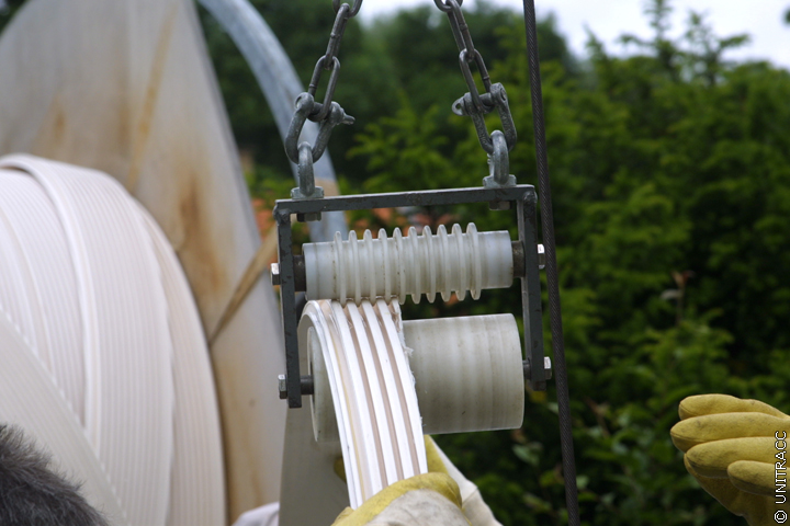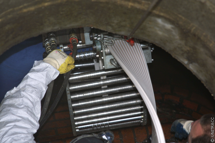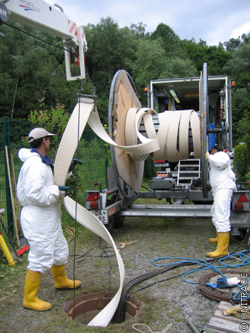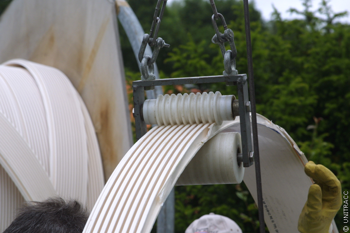 Der weitere Wickelvorgang erfolgt kontinuierlich von Schacht zu Schacht. Dabei ist darauf zu achten, dass das Wickelrohr nicht an der Altkanalwandung entlang scheuert oder an den Muffenversätzen hängen bleibt.